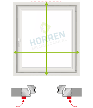 Let op!: Gebruik reguliere tape en geen industriële zodat uw verf of coating op het kozijn onbeschadigd blijft